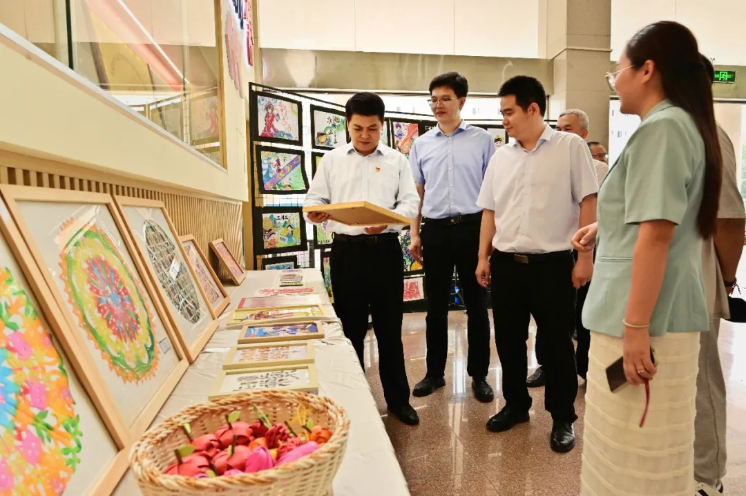 “共绘同心圆”民族文化艺术作品展区的作品格外亮眼。本次作品展面向全校征集,绘画、手工两大品类齐亮相,作品紧扣广西民族风情、玉林地域特色与壮锦文化元素,色彩明快、创意十足。主题绘画作品色彩鲜艳,一笔一画勾勒民族风情;手工作品精巧别致,融入民俗符号与非遗灵感,匠心满满。每一件作品都承载着同学们对民族文化的热爱,用艺术语言诉说民族故事。