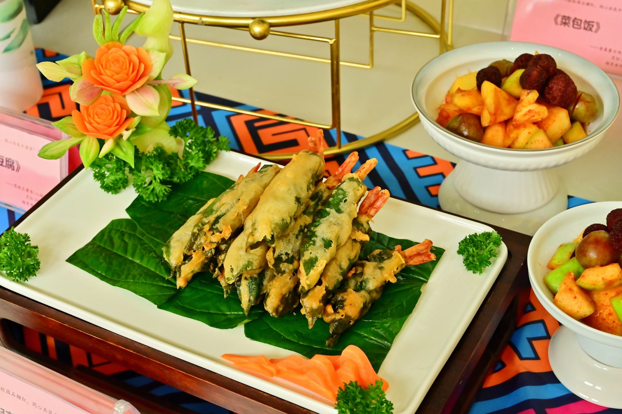 美食飘香处,人气格外旺!“舌尖民族情”烹饪美食展香气袭人,中餐烹饪专业学子大展身手,精心制作广西特色小吃与民族点心。色香诱人、造型精巧的传统美食整齐陈列,将八桂饮食文化浓缩于方寸展台,师生驻足品尝、点赞不断,以美食为媒,共品民族风味,共叙团结情谊。