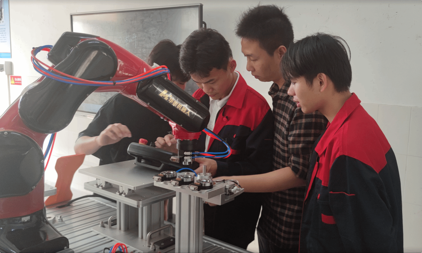 工业机器人技术应用专业成立于2023年,是我校自治区教育厅品牌专业(群)建设专业之一。本专业主要培养从事一线工业机器人操作运行、加工、设备维护与调试的技能人才。专业对接国家宏观政策“中国制造2025”制造业升级转型,发展潜力大,就业前景好。师资队伍方面,专业拥有一支理论丰富技能过硬的教学团队,团高级职称4人,中级职称3人,初级职称1让人,高级技师2人,技师4人,高级工1人,“双师型”教师6人。